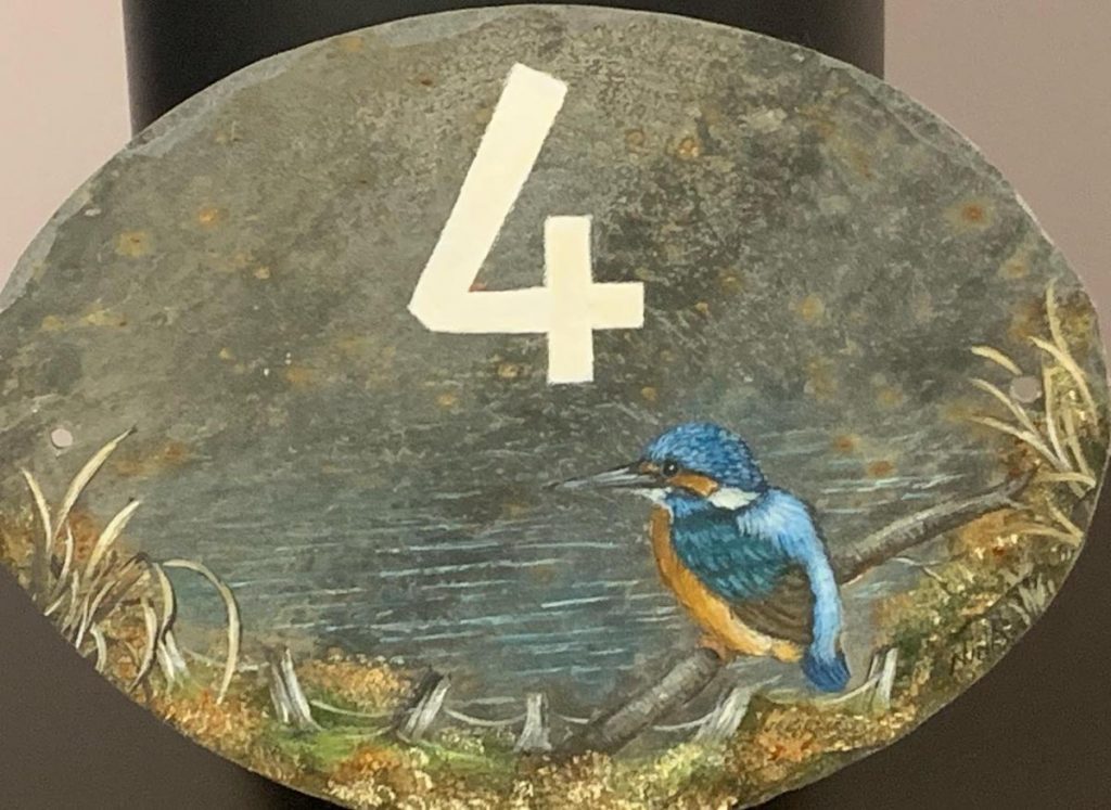 Kingfishers are just my favourite birds to paint, so I was delighted when I was asked to paint one on this special Christmas commission house slate.